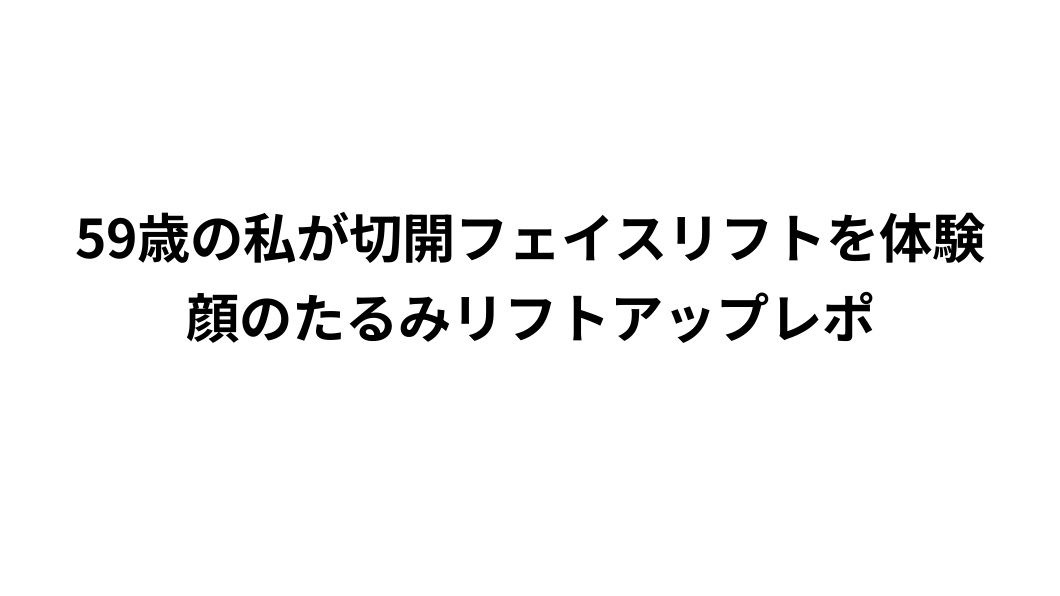 59歳になり、鏡を見るたびにほうれい線やマリオネットライン、ゴルゴラインのたるみが目立ってきました。セルフケアや美容器具だけでは限界を感じ、ついに切開フェイスリフトを決意しました。 切開フェイスリフト ...